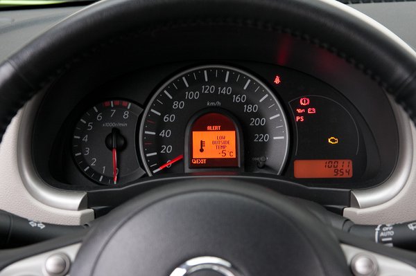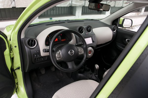 Nyolcvan lóerő. Elég az autóhoz, semmi kétség. Sajnos a váltót hosszúra áttételezték, gondolom azért, hogy a szabványos fogyasztásmérésen kiváló érték jöjjön ki. Ki is jött: 6,1-es a városi fogyasztás és 5 literes az átlag. Na, ennek semmi köze a gyakorlathoz. Ellenben míg a korábbi Micrákkal ötvennél már simán lehetett ötödikben haladni, sőt, picit gyorsítani, addig ezzel a motor-váltó kombinációval nem. Leginkább hármasban-négyesben gyötri az ember az egyhatosból csonkolt 1,2-es motort, ettől viszont idegesítő a hangja.