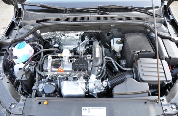 Ráadásul nincs súlyos tömeg, amit mozgatnia kéne, hiszen a 4644 milliméteres hossz ellenére a Jetta ezzel a motorral 1227 kilót nyom, ami ekkora testtől nagyon jó eredmény. Na jó, ettől még a négy pici dugattyú és a kis turbó nem csinál gumifüstölő vadállatot a gépből. 10,9 másodperc alatt gyorsul százra, azonban a már alacsony fordulatszámon megjelenő nyomaték miatt egyáltalán nem érződik gyengének, főleg, ha elég gyorsan kavarunk a váltóval. Cibálni lehet, de minek. Az ESP kikapcsolhatatlan, a motor hangja sem vérpezsdítő, a kipufogórendszer is teljesen máshogy duruzsol, mint a Golfban, nincs inger, nincs késztetés, de nem is hiányzik senkinek.