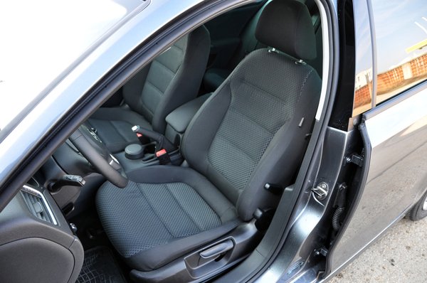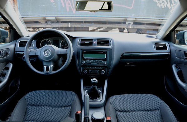 A simulékony külső sosem okozott gondot a Volkswagennek, de a fapados verziók belterei miatt állandó kritika éri őket. Tény, hogy a tesztautónk (Jetta Comfortline) fekete betétes sötétszürke-fekete bele nem egy atomvillanás, a műszeregység és a középkonzol pedig kevésbé felemelő, mint egy másodikos kifestő, ellenben így az is könnyedén eligazodik a kezelőszervek között, aki eddig csak Polóban ült. Kis eltérésekkel ugyan, de szinte minden ugyanolyan: katonás és sötét, ám könnyen kiismerhető, egyszerű. Lassan körvonalazódik a célcsoport, menjünk csak tovább…