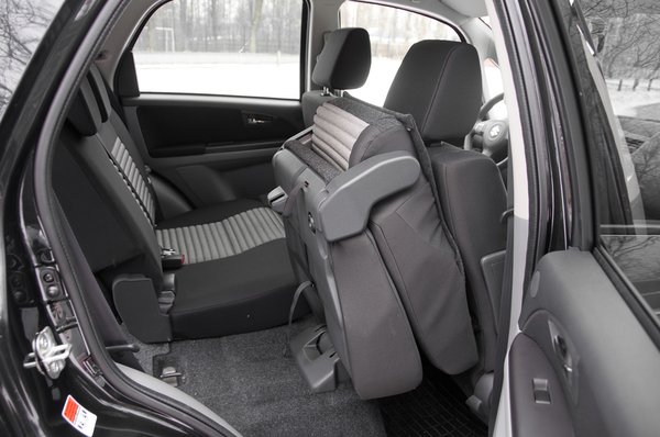 Nem mintha az SX4 szűk lenne, persze. Elöl elég tágas, épp annyira SUV-os az üléspozíció magassága, hogy a nők is szeressék, épp annyira nem teherautós, hogy jó legyen betenni kanyarokba. Egy-két hiba azért akad már itt az elhelyezkedésben – a kormány csak fel-le állítható (2011-ben!), sokan tehát úgy érzik majd, nyújtózniuk kell utána, a gázpedált pedig nagyon lefelé, nem pedig előrefelé kell nyomni, ami elfárasztja a lábat. De ezek nem vészes dolgok, az ülés jó, vannak rekeszek, minden a kéz ügyében, nem szóltam semmit. Hátul is akad hely, két darab full-size felnőtt jól utazik itt.