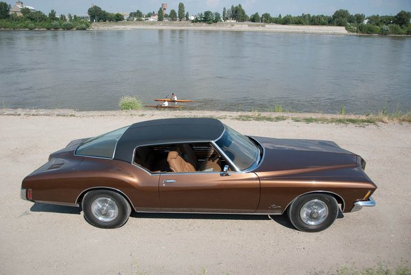 Andrásé egyébként a legszebb harmadik szériás Riviera, hiszen csak az 1971-es autókon van a csomagtérfedélen a szellőzőrács. 1972-re ezt befedték, mert bizonyos sebességeknél beszívta az esőt, kipufogógázokat. Ma már nem látjuk viccesen nagynak az ablakokat a kocsin, inkább izgalmas stílusvonásnak. És itt még a hajlított, karosszéria vonalába simuló lökhárítók vannak, nem azok a szörnyű, biztonsági téglatestek, amiket 1973 után minden Amerikában forgalomba hozott kocsinak kötelező volt viselnie. Az első Riviera forradalmat hozott Amerika autótervezésébe. A harmadik széria pedig elegánsan lezárta a kort.