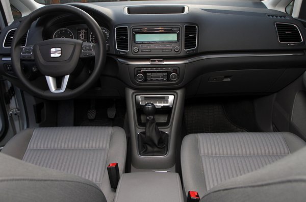 Miután az óvodások visszatértek a csattogós falepkékhez, a legóhoz és a babaházhoz, magam is bemásztam a hátsó ülésre, és úgy találtam, hogy Sanghajig talán nem ülnék itt szívesen, de Velencéig egyetlen zokszó nélkül kibírnám. Az Alhambra egyik nagy értéke egyébként is a kényelme és az utazási komfortja. A lábtér fejedelmi elöl és a középső sorban, és mint kiderült, hátul is elfogadható. A háromzónás automata légkondi szinte észrevétlenül, de hatásosan hűt-fűt, értelemszerűen a középen ülőknek is megvan a maguk kezelőpanelje, ahol a hőfokot és a befújás erősségét szabályozhatják. A hifi hangja nem kápráztat el, de nem is hallgathatatlan, jó átlagos darab. Viszont legalább van hozzá jack-aljzat, így rákapcsolhatjuk a saját médialejátszónkat, aminek tágas üreget alakítottak ki a középső könyöktámasz alatt. Ma már szinte alap, de azért felsorolom: elektromos mozgatásúak az oldalablakok és a külső tükrök, az automata világítást kanyarfénnyel is kiegészítették, az ablaktörlő vezérlése esőérzékelős, a B oszloptól hátrafelé az ablakok sötétítettek, a telefonunkat Bluetooth-kapcsolattal a hangrendszerbe integrálhatjuk, a hifi és a telefon vezérlése a volánon található gombcsoportokkal is megoldható. És hát ne feledkezzünk meg az egyik legpraktikusabb újításról, a két oldalsó tolóajtóról, melyekkel a legszűkebb parkolóhelyen is megoldható a ki-be szállás. Ha ideiglenesen furgon üzemmódba helyezzük a gépet, a hatalmas feltáruló nyílásokon át a pakolás is egyszerű.