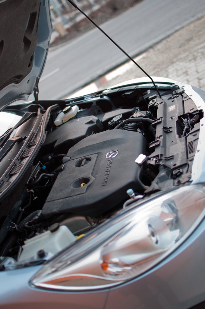 A váltó néha akad, elsősorban egyes fokozatba téve, függetlenül attól, hogy tolattunk-e előtte vagy a lámpától indulnánk. A Start-Stop rendszer, amit a Mazda I-stopnak nevez, szépen teszi a dolgát, egy észrevételem van, amit eddig sehol sem tapasztaltam, egy perc után villogni kezd a kijelzőn, majd újraindítja a motort, próbálgattam légkondi-kikapcsolással, lámpalekapcsolással is, a végeredmény ugyanaz, egy perc és indít, legalább kiderült, hol vannak ennél hosszabb piros lámpák az útvonalamon.