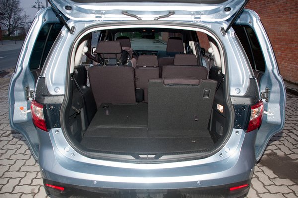 Az ülések hajtogatását is rendesen kitalálták, a két hátsót csak meg kell húzni és szépen felhajlik, a visszadöntéshez se kell diploma, ugyanezt a kart megrántva visszadönthető. Hét üléssel a csomagtér jelzés értékű, mondjuk inkább úgy, hogy nincs, de aki ilyennel akar heten menni nyaralni, annak tényleg elment az esze. Nagyobb cuccok szállításához négy másodperc alatt felállítható a két középső ülés ülőlapja, és a helyükre bedönthető a támla, a megszokott hanyatt esős, japán billentő módszerrel.