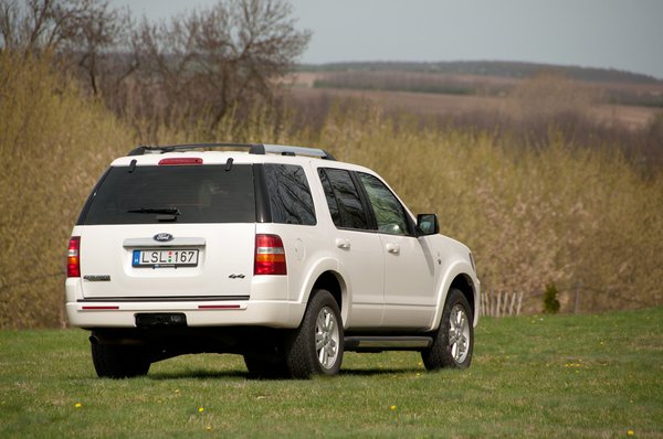 De akadnak olyan vérpezsdítő, retró kiegészítők, mint motoros rádióantenna, ugyancsak a 60-as évekből, vagy motorral felállítható, vagy padlóban eltüntethető pótülések a csomagtartóban. Ilyenek tehát vannak, de a fő extra mi más lehetne, mint a V8-as motor, 600-as alapjárattal és 4600 köbcentivel. Mmmmm! A V8-ast Amerikában elsősorban a teljesítmény miatt szerették. A Cadillac már 1915-től gyártott ilyet, a Ford 1932-től, aztán az 50-es és 60-as években ez lett a középkategória, ha nem is az alap. Jól megy, nyomatékos, sokkal nagyobbat harap, mint nyolc henger sorban, de így 2011 táján a teljesítmény mellett leginkább a rotyogó kipufogóhang adja a varázsát, meg az a kellemes, füllel nem is érzékelhető vibráció, ami folyamatosan jelen van egy ilyen autóban. Ez teszi krémessé a mai amerikaiakat, például a Cadillac SRX-et, ami szintén 4,6-os V8 volt, de az ugye General Motors, ez meg Ford. Mindegy, a V8 az V8, erőben és kulturáltságban nincs igazán különbség. Mindkettő csodálatos. Az Exploreré 292 ló és 427 Newtonméter, mert ez a Ford modernebbik, hengerenként háromszelepes moduláris V8-asa. Ezt rakják még Mustangokba és az F-szériás pickupokba is.