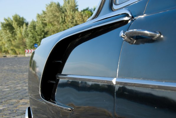 Tegyük a helyére: ez egy léghűtéses, V8-as farmotorral hajtott, kormányváltós, igen nagy testű, rendkívül áramvonalas, minden kerekén függetlenül rugózott autó. A konkrét példány az újpesti Dissous- és Oxigéngyár vezérigazgatójáé volt 1971-től, és mivel a gyárnak el kellett költenie az évenként kapott amortizációs pénzt, ezért 1972-ben újrafényezték (bár ne tették volna), 1973-ban pedig kapott egy új motort a 36 ezret futott sajátja helyett. Így lehet most a tulajdonosnak, Fazakas Gergelynek egy szinte vadonatúj 603-as blokkja tartalékban.