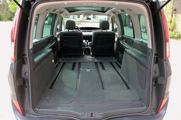 Tán éppen ezért a legmeglepőbb, hogy tényleg hétszemélyes (+250 ezer forint a két leghátsó ülés). Nem úgy, mint egy Sharan vagy Galaxy: itt a leghátsó sorban is tisztességesen elfér egy felnőtt, nyakba húzott térd és kicsavart végtagok nélkül is, ezzel mindenki egyetért, aki valaha ült Espace-ban. A trükk egyszerű és működőképes, a zseniális Fiat Multipla is tudta már: az oldalablakok szinte kifelé dőlnek, az autó keresztmetszete kis híján tökéletesen négyzetes. Jó reggelt válltér, többet számít, mint bárki gondolná.