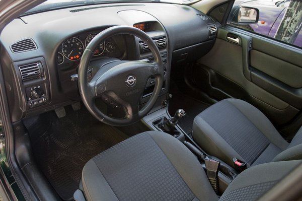 A tesztautó kárpitjai szinte újnak tűntek, az ülések kényelmesek, nincsenek kiülve. A műszerfal már nem úgy csillog, mint újkorában, de nagy baja nincs, még jó pár évig nem is lesz. Meglepő, hogy a tapintható felületek – ide tartozik a műszerfal is teljes hosszában – puhák, kellemes tapintásúak, vagyis a G Astra utastere a maga egyszerű módján tulajdonképpen egészen kellemes.