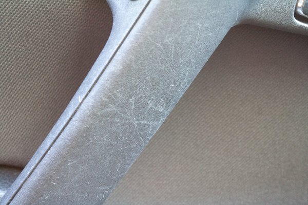 A kezünk ügyébe kerülő tárgyak közül csupán egy, az ajtón lévő kapaszkodó kemény műanyag; látszik is rajta a használat, a rideg felület könnyen kopik és minden apró karcolás nyomot hagy rajta. A váltó bőrgombja mattult valamicskét, de még jól tartja magát, a szoknyáján viszont nyomot hagyott az idő, hamarosan ki fog lyukadni. Nagy baja azonban nincs a kocsi belsejének, egy olyan tízes skálán, melyen a 10 a szalon állapot, a 0 pedig a kuka, 7,5-8 pontot simán érdemelne így kilencévesen.