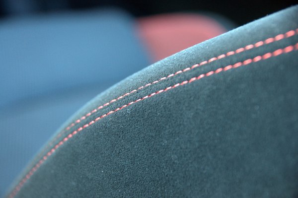 Itt üt vissza a fickósan emelkedő övvonal, a kicsi – ráadásul sötétített – oldalablakok, a jobbára csak dísz hátsó üveg, amit nyugodtan boríthatna lemez is, haszna nincs sok. Sötétszürkék az anyagok, fekete a finom tapintasú, Alcantarát idéző szövethuzat, és hiába a világos tetőkárpit, ugyanolyan meddő harcot folytat a komorsággal, mint a varrások szép, piros cérnája. Mintha vércsík futna végig a bőrkormányon és kézifékkaron, amit az ereit felvágó, ám kötelességtudó kárpitosmester hagyott maga után, miután megsiratta ezt az ötlettelen belteret.