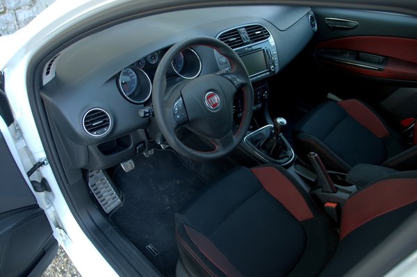 Miután sikerrel magunkra vettük a Bravót, kiderül, hogy odabent nem is olyan rossz ülni. Az ülések tömése jól eltalált, ésszerű kompromisszum a hardcore kemény és a fotelszerű lágy között. Tág határok között állíthatóak, a csípő-kormány-váltó háromszög szinte ideális.
