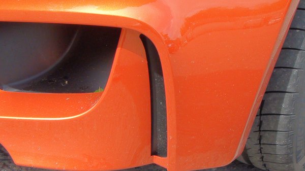 Légfüggönyök elöl az őrületes aerodinamikához – először használnak ilyet sorozatgyártású autóban: az elöl belépő levegőt nagyobb sebességnél az első kerekek mellé vezeti, afféle légfüggönyt létrehozva, ami csökkenti a légellenállást. A megoldást 2009-ben láthattuk először a frankfurti szalonon bemutatott BMW Vision EfficientDinamics tanulmányautón, és az 1M tervezőinek jutott a boldogító feladat, hogy az elméletet átültessék a gyakorlatba. Élőben nem tűnik egy fekete mágiának – elöl bemegy a levegő, oldalt kijön. Kérdeztem az egyik termékfelelőstől, van-e valami számuk arra, hogy hány százalékkal csökkenti a légfüggöny a légellenállást és a fogyasztást, esetleg oldalirányú leszorítóerőt is termel-e, melynek következtében az autó mindig a saját két széle között marad, de nem tudott róla, hogy készültek volna ilyen számítások.