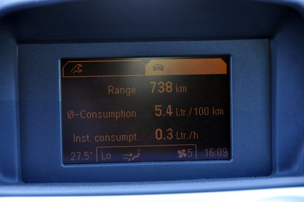 Talán ez volt az első olyan tesztautó, amelyik városi körülmények között jóval kevesebbet fogyasztott, mint országúton. A gyár által megadott 4,3 litertől persze így is elmaradtam legalább fél literrel, de nyögve-nyelve még ez egész jónak mondható klímával, nem tötymörögve. Azonban az országúti 3,2 litert ez az autó maximum a tréleren állva tudja reprodukálni, értelmes, hétköznapi tempóban nem. A városból kiérve szinte térden állva könyörög egy hatodik fokozatért, ami nincs, ez nem is lenne gond, ha cserébe ne lenne iszonyúan, kellemetlenül hangos.