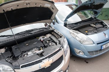 A kétliteres dízelmotorok ma már olyan jó kondiban vannak, hogy egy ekkora hétüléses egyterűbe elég lenne egy kisebb is. A Renault ezt az 1,5 literes dízellel tudja le, de hamarosan jön a szuper, új fejlesztésű 1,6-os. Valaha egy ekkora autóba nem is raktak kétliteresnél kisebb dízelt, ehhez képest ma már egy ilyen luxusnak számít: a 160 lóerő körüli teljesítmény döbbenetes, tíz éve még 110-től is elájultunk. Még durvábbak a nyomatékértékek: a Chevy 360, a Renault 380 newtonmétert nyom, kétezres fordulaton.