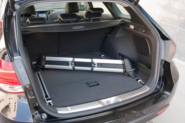 Persze, ez az 553 jól mutat majd az excel-táblázatokban, ahogy az 1719 liter a lehajtott támlás konfigurációra. Utóbbi már csak azért is hihetetlen, mert alig egy szatyornyival kevesebb, mint egy Passat Varianté, pedig az egy furgon a csapott fenekű Hyundaihoz képest. Ettől még remekül használható kombi az i40 is, amolyan átlagos csomagtérrel, viszont a ma létező legalacsonyabb rakodóperemmel.