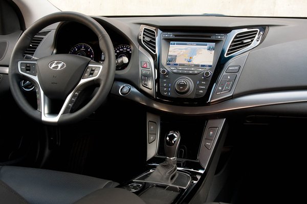 Ez hatványozottan igaz belül: a műszerfalról a Subaru Legacy ugrik be, de a Hyundai részletei kifinomultabbak, az anyagminőség pedig az összes japán középkategóriásnál jobb – kivétel nélkül. A műszerfal puha tetejű, bár azt sajnálom, hogy a Hyundainál is elhitték, hogy a fényes fekete, látványosan műanyag zongoralakk betét szép.