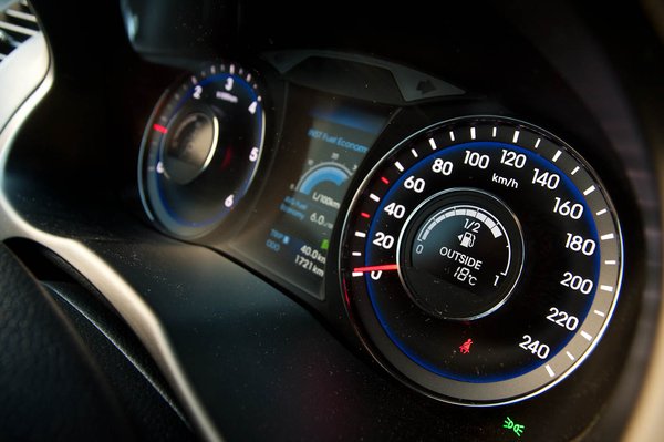 Érdekes, hogy az i40 hangszigetelésével nem volt semmi gond, és a dízelek nem is vibráltak, viszont hidegen a kétliteres benzines igen. Ez meglepett, de szerencsére hamar elmúlt. Ezt is automatával kértük, és nem volt rossz döntés, bár az alap kapcsolási program kissé túlzottan a gazdaságosságra hajt és megfontoltan veszi a gázt a motor gyorsításkor. Ideje volt felfedezni a sport gomb varázsát, ezzel már minden rendben lévőnek tűnt. A nyugodt csordogálás a végére 8 literre vitte le a fogyasztását, de ez ne tévesszen meg semmit: az olyan részen, ahol gyorsítgattunk, volt ez 11 is.