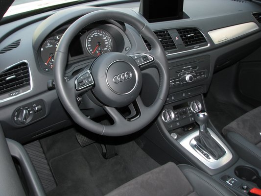 Az egyelőre négytagú motorválaszték (kétliteres dízel 140 és 177 lóerővel, 2.0 TFSI 140, illetve 211 lóval, a legkisebb kivételével mind összkerékhajtással) maradéktalanul képviselteti magát a bemutatón, még egy bónuszt is tartogat a flotta. A helykínálat rendben van – elöl bőségesen, hátul nyársat nyelve, de feszengés nélkül elférni, a két részből álló kalaptartó vonaláig a mély csomagtér is jól kihasználható. Kezelőszervekről Audiban felesleges szót ejteni; a kapcsolók és a funkciók minimálisan eltérőek lehetnek ugyan, de elhelyezésük és kezelhetőségük nem. Bár más a dizájn, a legkevésbé sem ébreszt újdonság-érzetet a Q3 vezetői környezete. Annyi jópofaságot megengedtek maguknak a tervezők, hogy opcióként LED világítsa meg az első ajtókban lévő hangszórókat, valamint a pohártartókat, mintegy tisztelegve észak-amerikai és délkelet-ázsiai kollégáik ízlésformáló munkássága előtt.