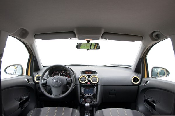 Csodálatos volt az első nap, amit a Corsával töltöttem. A Sunny Melonnak nevezett színnel kilógtam a forgalomban zombifejjel hazafelé araszolgató tömegből, mindenki megbámulta a valóságnál legalább ötven lóerővel többet sejtető tizenhetes felniket, és menet közben biztosan senki nem látta a hátsó dobfékeket. Rádiózás közben hamar feledtem, hogy előzőleg egy közönséges pendrive és néhány mp3-as felvétel többszöri kísérletezéssel teljesen lefagyasztotta a navigációt is tartalmazó audiorendszert. Csak a ki-bekapcsolás, illetve a stick eltávolítása segített a bajon. Nem lettem ideges, mert a Touch & Connect nevű fejegység többi funkciója jól működik. Érzékeny a képernyő, lehet ujjal nyomogatni a felbukkanó gombokat, van BMW stílusú, klasszikus állomáskereső-képernyő, és amikor szól, tulajdonképpen egész jól szól a száznyolcvanezer forintos csúcskészülék.