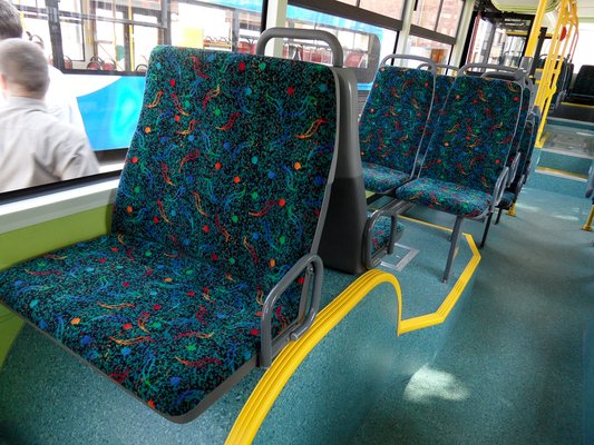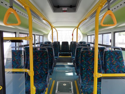 A helyközi Sirius utasterét is hozzáigazították a használathoz, hisz az utasok több időt töltenek a buszon – az ilyen helyközi járatokat száz kilométerig szokás használni. Az ülések vastagabb párnázásúak, magasabbak, és persze több is van belőlük. A műszaki adatok 43 ülő- és 52 állóhelyről szólnak, de ez utóbbi inkább a padló terhelhetőségét jellemző paraméter, remélem.