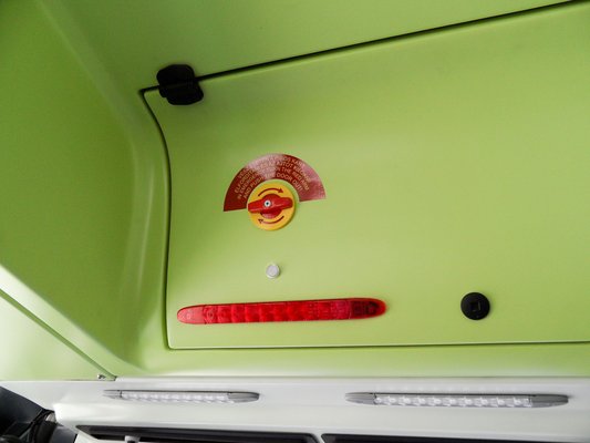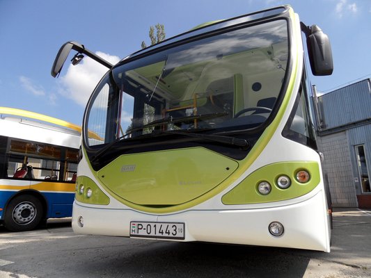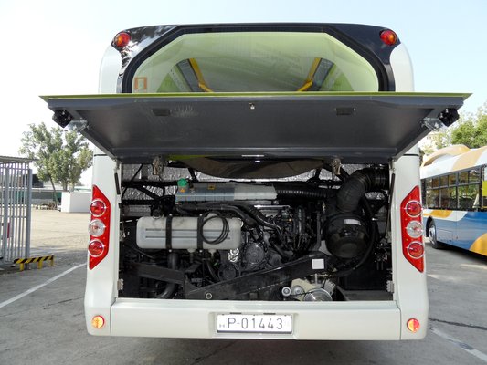 A rugózás komfortos, noha elöl is merev híd van, a karosszéria nem nyekereg, a belső elemek szilárdan rögzítettek. Tekintettel arra, hogy tulajdonképpen egy prototípusról van szó, meglepően nem barkács jellegű a busz. Igaz, a második ajtó feletti burkolat valamiért kinyílt, biztos nem zárták be rendesen. Nem tudom, mennyire könnyű tisztán tartani a világos belsőt, de tény, hogy a napi forgalomban használt városi verzió nem tűnt lelakottnak.