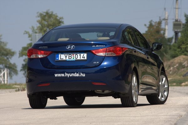 Az i30 többlengőkaros futóműve helyett sima csatolt hosszlengőkarosat pakoltak be hátulra, de ennek ellenére nagyon agilisnak tűnik az Elantra kormányzása. Sőt, talán túlzottan is, hisz mégiscsak egy családi szedán lágy rugókon, nem egy sportkocsi, szinte már túlzás, amilyen vehemenciával fordulni kezd a legkisebb kormányrezdülésre. Talán a hátsó futómű éri el ezt a hatást, de emiatt erős fékezéskor kicsit kígyózik a feneke. Igaz, azzal a szlogenekkel árulják, hogy: „Vezetésre született, nem pedig arra, hogy kövessen valakit!”, mintha minden F1-es versenyző álma az lenne, hogy Elantra legyen a szolgálati autója, csak sajnos tiltja a szponzori szerződése, ezért jár inkább SLR-rel.