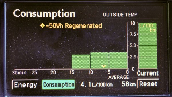 Tesztautóval mentem Tatabányára, ahol a Priust kipróbáltam. Történetesen egy 200 lovas, benzines Citroën DS4-est sikerült elkötnöm, meg is járattam az 1,6-os turbóst. Országúton, egy kis várossal, 8,6-on állt meg a fogyasztásmérő, amikor pattogó kipufogóval letámasztottam a tatabányai parkolóban. Nem rossz érték, jegyezném meg, ekkora autótól. Visszafelé megfogadtam, úgy fogok menni, ahogy Márk szokott, minden ravasz spórolási technikát alkalmazva. 5,3-at mutatott a fedélzeti, amikor Budapest határába értem.