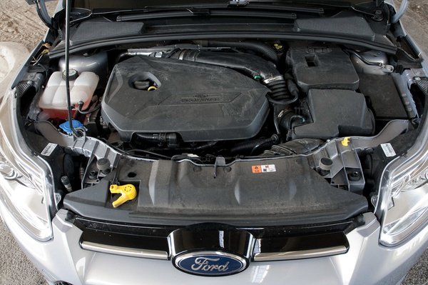 De térjünk rá a motorra, hiszen ez az autó legizgalmasabb része. Az 1600 köbcentis, 180 lóerős, turbós EcoBoost a Ford egyik legjobb motorja, amely sok hasznos és élvezetes tulajdonságot egyesít magában. Kezdjük az erejével. Bár az új Focus 1333 kilójával nem könnyű, így is 7,9 másodperc alatt gyorsul százra, de felejtsük el a számokat, hiszen nem az a lényeg, hanem amit a sofőr érez.