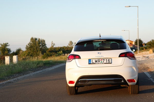 Gyorsan menni, azt lehet vele, abban semmi hiba. Az 1,6-os turbó benzines egyszerűen hibátlan, ráadásul az élményhez ad még a PSA szabadalma, a csak befelé, az utastérbe brummogó rezonátorbödön is. A váltó lehet, hogy ugyanaz, mint a DS3-ban: nagyszerű váltási érzet, rövid váltóutak és pontos kapcsolások még a hatfokozatú kulisszában is. De a kuplung, vagy valami az erőátvitelben már nagyon nem ugyanaz: nehéz vele bakkecskézés nélkül elindulni. 1-esben és 2-esben is rángat, mintha a motorelektronikába Bergengócia injektortérképét programozták volna, de simán el tudom képzelni, hogy egyszerű költséglefaragáson vérzett el a dolog: ami jó volt a DS3-ba, ezt is elviszi. Egyébként el is viszi, mert ha nyélen gyorsítunk, nem rángat, vagy legalábbis természetesebb az olyan rántás, csontig kiforgatva a motort. Erőátviteli probléma a bakkecskézésen kívül, ahogy a kormányt a gáz rángatja – a DS3-ban ilyen nem volt.