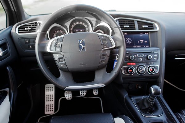 Jó a kormány fogása, tekergetni is jó, pont olyan közvetlen, amilyennek lennie kell, a rásegítés is olyan, hogy érezzük, komoly, erős autóban vagyunk. Az ergonómia nekem kicsit kaotikus, kezdve az ülésfűtés gombjának elhelyezésével: lent, az ülőlap oldalán motoszkálva mondjuk a támlaállító gombot keresgélve könnyű véletlenül magunk alá fűteni. A nagy kijelzőt sem tanultam meg rendesen kezelni a teszthét alatt: ha megnyomom a rádió gombját, kiírja az állomásokat, de aztán visszavált egy másik üzemmódba, amit egy harmadik gombbal állítottunk be korábban, és a navigációt vagy csak egy iránytűt jeleníti meg más egyéb adatokkal, ami már rég nem érdekelne, mert percek óta valami hallgatható adást szeretnék találni. Ami a DS3-ban a középkonzolon volt, az SOS és a Citroën Assistance gombok a DS4-ben a tetőkárpitra kerültek, kívül a látómezőn. Hiába persze, hiszen így is folyamatosan ellenállhatatlan vágyat érzek, hogy megnyomjam, legalább az egyiket.