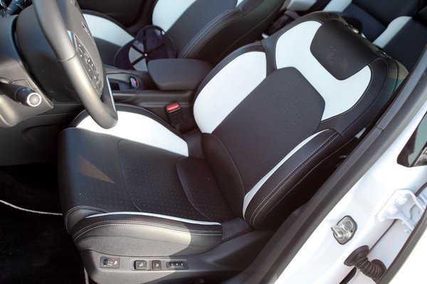 A műszerfalon körben puha műanyag, ami folytatódik az ajtók felső részén, de ott már nem puha. A fehér bőr ülésen is mutatós, bár nagy marhaság, ennél nagyobb marhaság már csak a fehér bőr az ajtó fogantyúja körül. A tologatható kartámasz se tűnik hitványnak, ráadásul van benne egy 230 voltos konnektor. Ez őrület: nem csak sminkelni lehet benne, de hajvasalót is használhatunk. Ja, és senki kedvét nem akarom elvenni, de a sminktükrök nincsenek megvilágítva.