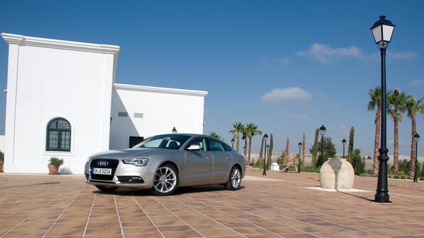 A 2007-ben bemutatott A5/S5-sorozatot is úgy vágták a BMW és Mercedes kapujának felső léce alá, hogy a mai napig rezeg, hiszen a 330 ezres eladott példányszám nagyon jónak számít ebben a szegmensben. Mára azonban, a modellciklus felét elérve eljött a jól megszokott frissítés ideje. Óriási szerencsénkre a Walter da Silva által megálmodott A5 olyan elegánsra és időtállóra sikeredett, hogy még kesztyűs kézzel is csak óvatosan nyúltak hozzá. A fényszórókon-lámpatesteken kívül csak a lökhárítókat gyurmázták át, amivel semmit nem javítottak az autó esztétikai megítélésén, de nem is rontottak. Az A5 ugyanazt sugározza, mint négy évvel ezelőtt, közhelygyűjteményünket felütve hűvös és kimért, tökéletesen arányos eleganciát. És mindegy, ötajtós Sportback, kupé vagy kabrió, mindig jól néz ki, a high-tech szigorú arc akár Darth Vader íróasztalán is állhatna bekeretezve.