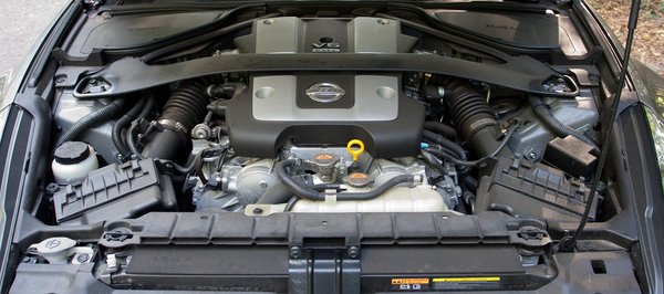 Kezdjük a legnagyobb hibával, amit sofőrként elkövethetünk, ha 370Z-ben ülünk: soha ne felejtsük el indítás után azonnal kikapcsolni a kipörgésgátlót! Jöhet a trombitafanfár, pörögjön a dob, lépjenek be a vonósok és zengjen az ének, dicsőítsük együtt a V6-ost, mely kétszáz köbcentivel nagyobb lett, mint a 350Z-ben volt, és most már 328 lóerős, 363 Nm csúcsnyomatékkal. A 370Z Roadster nem könnyű, a forgalmija szerint 1599 kilós, mégis 5,5 másodperc alatt százon van,a V6-os még nagy tempónál is olyan vehemenciával tolja előre, mintha az élete múlna rajta. Alul szépen duruzsol, felül egyre vadabb bömbölésbe vált, és tényleg gyönyörű hangja van végig, sportkocsihoz mérten mégis egy kicsit visszafogott, nem ártana rátenni egy hangosabb dobot.