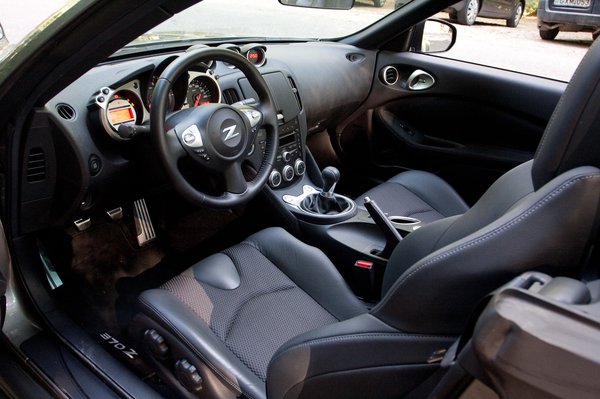 A beltér nagyon kellemes, az anyagok jó minőségűek, igaz, becsúszott egy-két műanyag betét, kallantyú, miegymás, a hifi sem kifejezetten trendi, az összhatás mégis jó. Az utastér a sok bőr és fém, vagy fémhatású kiegészítő miatt nagyon sportos, nem csak a pedálokat, de a trepnit is fém borítja, ami dicséretes. Ahhoz képest, hogy roadster, a 370Z-ben elég sok hely van, simán elüldögélnék benne egy Budapest-Frankfurt szakaszon – más kérdés, hogy a csomagtartót két húszkilós kutyatápos zacskó gyakorlatilag kitölti. De egy roadsternél ezen nem sértődhetünk meg.