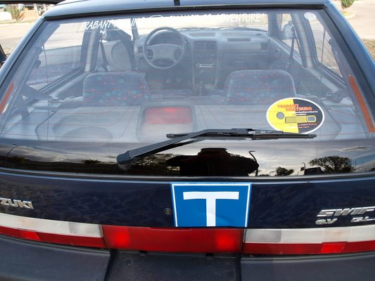 Ahogy egyébként én is. Új dimenziók nyílnak meg, amikor épp én vezetek, és a mattfekete, fényezetlen, enyhén lógó lökhárítóval díszített, T matricás Swift orrát elhelyezem a kereszteződésben. Az elsőbbség kérdése hamar átértékelődik, tízből nyolcszor megáll a forgalom, és udvariasan kiengednek. Persze mögöttem is javult a helyzet, a fent említett Trabant lámpakarika lenyomatát elegánsan kiemeltük a ráragasztott T betűvel – azóta jóval kevesebben tapadnak ránk.