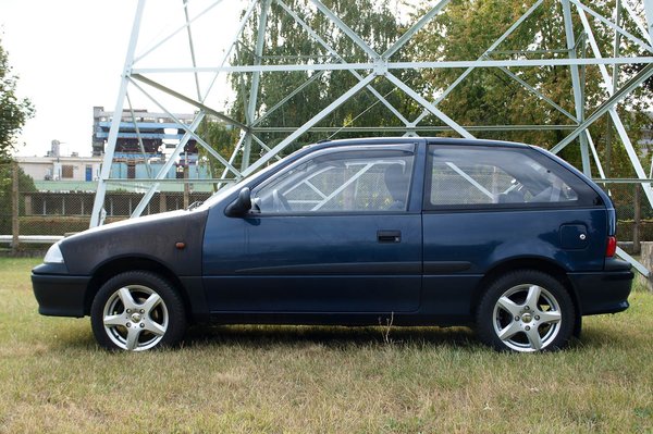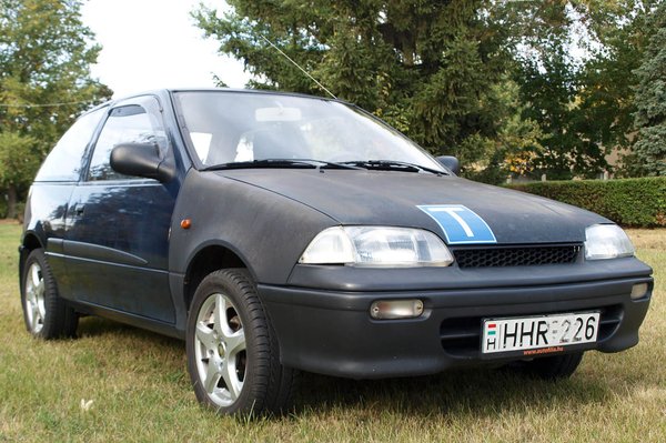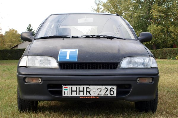 Nem így az azóta csak Korzás Köcsög néven emlegetett fiatal srác. Nem szeretném ismételni magam, itt a sztori. Egy-két hétig az sem volt biztos, hogy lábratesszük. Sajnos annyira extrém drága a ráncfelvarrás utáni Swift eleje, hogy könnyen megugorja a gazdasági totálkárt egy kisebb koccanás is. Ez meg nem volt olyan kicsi. Aztán a biztosító fizetett valami 310 ezer forintot. Osztottam, szoroztam, és egy hirtelen ötlettől vezérelve felépítettük az orrára a ’96 előtti alkatrészeket. Fényezés nélkül persze, hiszen a géptetőt harmadáért vettem, mint amennyiért fényezték volna. Köszi, jó ez, legalább nem féltem az óvodás szülőktől.