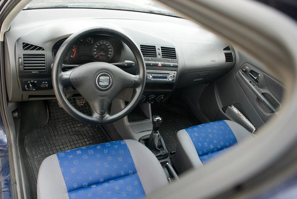 Valószínűleg testesebb illető lehetett, mert a vezetőülés lapjának hátsó része már megereszkedett, a bal külső sarkánál szakadt is, ezen kívül odabent csak a szélső fejtámlák hiánya tűnik fel a hátsó sorban, no meg a törött háttámlaledöntőgomb-keretek. Fentieken túl semmi, de tényleg semmi: hibátlan a rádiós-kazettás fejegység, a kormány mellé/alá helyezett kis kezelőkonzolon is tökéletesen működik minden, bár dohányoztak benne (használt a szivargyújtó), de nem büdös. Recés a kormány és nem zörög semmi.