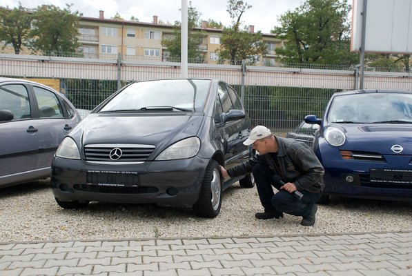 Persze nem dőlünk be ennek, így hát kikértük a három autó állapotlapját, amit minden potenciális érdeklődőnek megmutatnak. Kíváncsiak voltunk, mennyire egyeznek azzal, amit mi láttunk odakint a kavicson. Itt dőlt el, hogy mégsem a 2001-es Mitsubishi Carismát viszi el Pista. Már odakint is csak hosszas győzködés után volt hajlandó belemenni, mondván, japán autó így nem rozsdálhat, ez nem éppen bizalomgerjesztő tényező még akkor sem, ha tudjuk, ez a Mitsubishi sosem látta Nippont, hiszen Hollandiában a DAF-utódként ismert NedCar-nál készült.