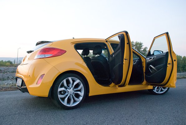 További egyedi ötlet, hogy a bal oldalon csak egy hosszú ajtaja van, a jobb oldalon viszont kettő, kisebb. Talán azért, hogy a szembe jövő autósoknak teljes legyen a kupéillúzió, járdán várakozó családunk viszont megkapja az ötajtós kompaktok minden beszállási kényelmét. Apuka ül a sportkocsiban, hosszú ajtón letekert ablakán át vállizmot villant az irigyek felé, anyuka csücsül a biztonságos és praktikus túloldalon, csemeték hátul. A világban rend van, ha Velosterben utazol.