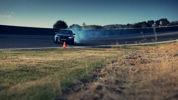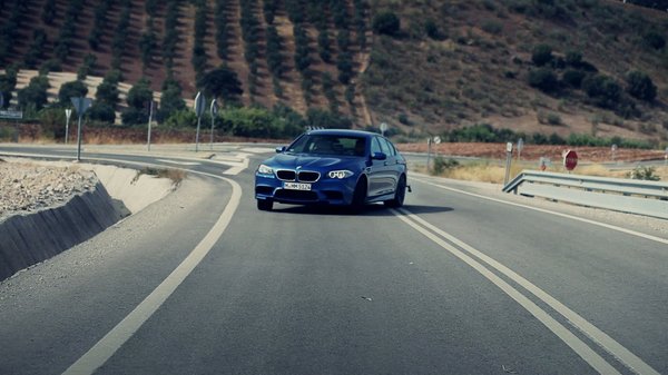 A tesztút első órája végén elérkeztünk egy kacskaringós, elég kényelmetlenül szűk kis szerpentinre. Egyáltalán nem volt forgalom, ezért megálltunk forgatni. A comfort üzemmódban nagyon kellemes futómű átkerült sportba, a váltó és a kormány úgyszintén. A karosszéria minden menettel zsugorodott 10 centit körülöttem. Ha előző nap bárki azt mondja, hogy egy 7 méter széles utacskán driftelni fogok az M5-tel, egyórás ismeretség után, ideges fejhangon kiröhögöm. Erre most a világ legtermészetesebb dolgának tűnik kinyomni a DSC-t. A BMW annyira egyértelműen kommunikálja a szándékait, hogy nincs miért félni tőle. Először a kormányon finoman jelzi, hogy kezd belefeszülni a kanyarba. Aztán érezni, hogy a hája elkezdi elhasználni az első gumikat. És innen minden a jobb lábon múlik. Tartott gázra bekanyarodik, kis gázzal kigyorsít, nagy gázzal elégeti a Michelineket, és ujjongva trombitál. Nyilván nem foszthattam meg ettől az élménytől.