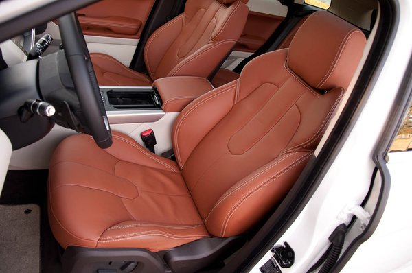 Nézem az Evoque modern luxusdizájnját kívül, nézem az állítólag Victoria Beckham részvételével tervezett luxusdizájnt belül, és azt mondom: ennyi! Victoria Beckham egy nagyon jó ízlésű illető, csak szereti a fejénél háromszor nagyobb napszemüvegeket. De a csapat, amibe bevették, tökéletes munkát végzett. Szépek a bőrök önmagukban is, de a színösszeállítás is bejön – a szélvédő alatti rész fekete, ami szemben van velünk, fehér bőr, az ajtók nagy része is fehér. Így van egy olyan illúziónk, hogy világos a beltér, ami érzetre mindig kellemes, de mindaz, amihez gyakran érünk, az ülések és az ajtó fogantyú körüli részei barnák. Vagy mint itt, a középkonzol pereme, alumínium, így aztán az a benyomásom, hiába alapvetően világos ez az Evoque-belső, nem lehet olyan gyorsan lelakni. Sokat dobnak a minőségérzeten a valódi alumíniumok is, bár a középső érintőképernyő keretéért nem tenném tűzbe a kezem.