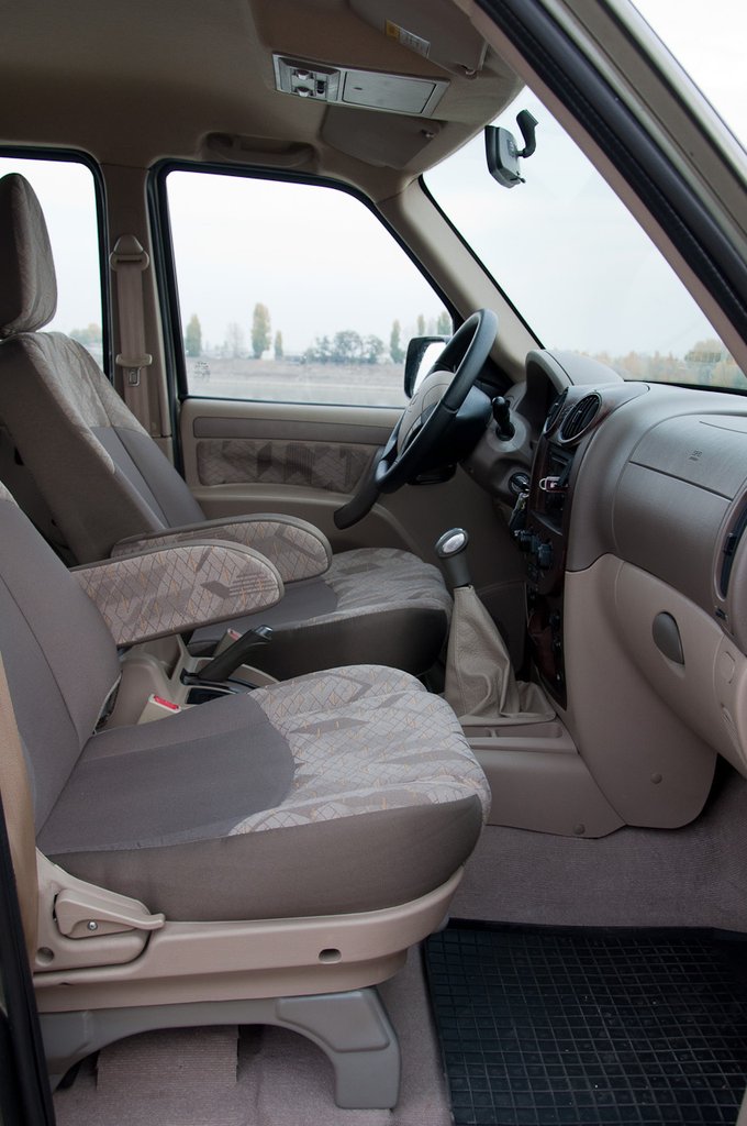 Beülve a kocsiba rögtön feltűnt a 90-es évek japán autóinak barna színösszeállítása, a fabetét ami egyáltalán nem akar fának látszani. De ezen kívül nem nagyon lehet belekötni a belsőbe: számtalan apró rekesz várja a telefonom, belépőkártyám, miegymásom. Sajnos itt is megvan a pickupok nagy hátránya, a csomagtartó teljes hiánya. Ráadásul a hátsó ülés se dönthető, így a mögötte lévő kis rész is kihasználatlanul marad. Így nem marad más hátra, mint felépítményezni a rakteret, a szokásos dobozos megoldással. Lehetőleg kevés átlátszó ablakkal.