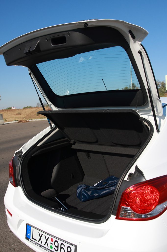 Nincs itt mit ragozni, a Cruze ötajtós bódéja a ma kapható egyik legjobb. Na nem azért, mert tetszik a formája, a gyakorlatias énem tesz az ilyesmire. A lényeg, hogy be lehet ülni hátra is, úgy hogy az ember nem szorul be reménytelenül. És mindemellett még tisztes csomagtartója is van, a kategóriában egyértelműen az egyik legnagyobb (413 l), talán a Citroën C4-é közel ekkora az ötajtósok között.
