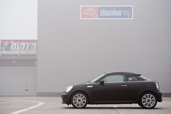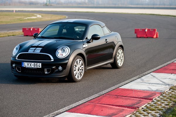 Rögtön az elején tisztázzuk: nagyon szeretem a Minit. A régit is, az újat is. A gyenge alapmodelleket is, és a bohócforradalmár Cooper S-t is. De ezt a Coupét, ezt egyszerűen nem értem. Én vittem le a Slovakiaringre. A reptéri gyorsforgalmin, amerre lakom, van egy íves felüljárón pár dilatációs hézag. A Coupé akkorákat ugrott rajtuk, hogy már az ejtőernyő kioldózsinórját keresgéltem. A Dunaszerdahely felé vezető úton azt mókáztuk Fenyő fotográfussal, hogy hosszú, kitartott ő-hangot hallattunk, amiből a rázkódástól övövövövövő lett. Ilyet utoljára a centrifugán ülve játszottam, úgy 30 éve.