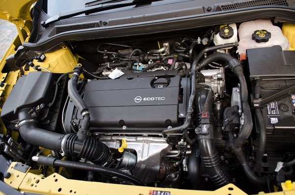 A karosszéria nem csak a modern szobros, vadul kavargó ívekkel dekorált lemezekben tér el az ötajtóstól. Az Opel szerint mindenben: valamennyi karosszériaelemhez más présforma kell, mások az ablakok és a fényszórók, a hátsó lámpa is kicsit lapítottabb. Három egyezést azért elismertek: cápa-antenna, kilincs, külső tükörház. Én hozzátenném még az oldalsó indexeket, melyek szerintem az utóbbi tíz év valamennyi Opeljének legalább nyolcvan százalékán szolgálnak. A GTC-re nem is illenek, de ilyesmin nyunyogni már tényleg szőrszálhasogatás, ünnepeljük inkább, hogy a 380 literes csomagtartót kívülről az embléma lenyomásával nyithatjuk. Egyikünknek se sikerült persze magától. Én az egészet forgattam volna, mint a Seatokét, más az alja alá nyúlt volna, mint az Alfáknál, de ő is hiába kapirgált. Aztán megkönyörültek rajtunk, és megmutatták: az alját hüvelykujjal nyomni, a többi ujjal az ajtó peremét húzni. Ha tudjuk a tudjuk a titkát, már megy is.