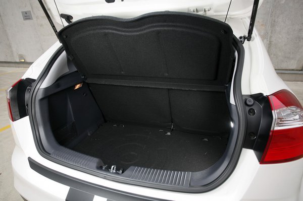 Az ajtók ugyan nem csukódnak olyan finoman, mint a Yarison, de a belseje olyan, mintha egy elvetett VW-designt loptak volna ki egy wolfsburgi kukából. Valójában az anyagok csak úgy néznek ki, de nem pont olyanok, mint amilyenek egy Polóban vannak. Mégis inkább ez, mint mondjuk a Honda Jazz anyagai, kínaidorkó-szaggal fűszerezve. Viszont a Kiában pár látványos helyen használtak ujjlenyomatosodó, sima műanyagokat, és az utastér halkan zörgött is itt-ott. A csomagtartón végképp semmi nyoma a nagyvonalúságnak, itt tényleg minden ócsó.