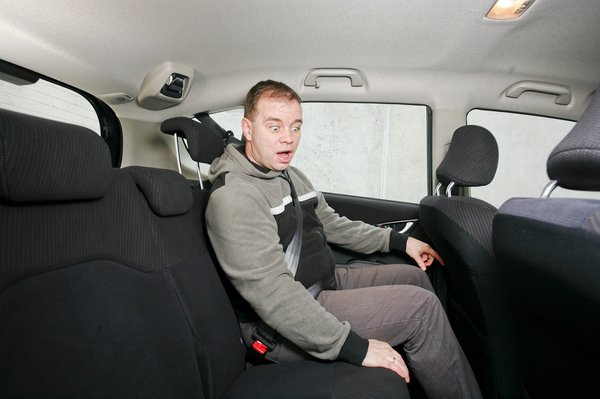 Egyértelműen a Rióban vannak a legjobb első ülések, amelyek szinte 1:1-es másolatai a Golfénak. A Toyotáén lehet még normálisan ülni, de a másik kettőé olyan rövid, hogy főleg a seggcsúcson ülőknek jó. Hátul hatalmas a hely, magam mögött úgy ültem, mint egy egy számmal nagyobb kocsiban. Igaz, a tető viszonylag alacsony, úgy 180-185 centiig lehet jó. A lenyűgöző méretű utastér meg az egy normális méretű csomagtartó (288 l) leginkább annak az övön aluli ütésnek köszönhető, hogy a Rio a Citroënnél 10, a Hondánál 14, a Toyotánál pedig 16 centivel (!!!) hosszabb. Ez óriási előny – na de ki tiltotta meg a többieknek, hogy nagyobb autót tervezzenek?