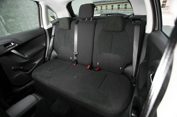 Papírforma szerint nincs is más ütőkártyája a franciának. A motorja a maga 95 lóerejével a mezőny leggyengébbjének tűnik, és csak a C3-as tengelytávja rövidebb két és fél méternél – egész pontosan 2 méter 47 centi. Beülve igazolódni is látszik az előítélet: az ülés magasan van, az ülőlapja rövid, és a szélvédő, ami csak az elöl ülők feje mögött ér véget, gyanúsan közel van. Hátul 185 centi feletti magassággal már a tetőkárpitot támasztjuk a frizuránkkal – ez a merész ívű tetővonal ára. Ráadásul a közepesen felszerelt tesztautóba nem jutott még egy tisztességes kijelző sem – tízéves mobiltelefonokat idéző narancssárga-fekete, pixeles szörnyűség világít a középkonzolon.