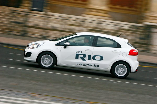 A Rio kormányzása addig tetszett, amíg parkolni kellett, mert ilyenkor elképesztően könnyűvé válik, és andalgós sebességnél is jónak tűnt. Amint egy picit gyorsabban kezeltem a kormányt, fura, szintetikus módon kezdett működni, mintha egy húszkilós ballaszt nőtt volna a kormánytengelyre. A féke viszont nagyon rendben volt, a Rio az 1,4-es motorhoz négy tárcsaféket és ESP-t is kap, igaz, utóbbi még a legpuruttyább verzióban is benne van.