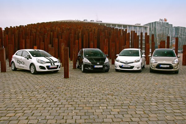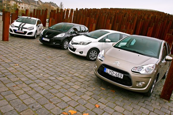 Valószínűleg mindenki érzi, hogy autós újságírót élve nem nagyon engednek háromhengeres Yaris 1.0 közelébe. A minden fordulatszámon döglött, 75 lóerős Citroën C3 esetében is hiba volt. Ez alapján mindenkit lebeszélünk az 1,1 literes, 60 lóerős motorról. Ezekkel a motorokkal tényleg csak vicinális használatra valók az autók, a C3 még csak nem is takarékos. A Kia 1,2-es verziója kis szódával elviselhető, de alul erőtlen, a Honda 1,2-ese már egészen elfogadható – utóbbit még a menetpróbán vezettem, alig kisebb a briliáns 1,4-esnél, ami korrektül kerekítve inkább 1,3-as. Utóbbi kettő azt hiszem, inkább vállalható. (PT)